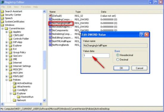 If there is no option, you can click the blank pane with the right button and select ‘New’ and then click ‘DWORD Value’, which is named ‘NoChangingWallPaper’, and set the value to’1′, then the desktop wallpaper is locked. Do not forget to reboot the computer.