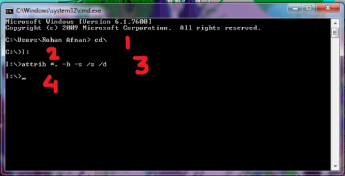 How to Unhide all Hidden Files and Folders in a USB Flash Drive using DOS: